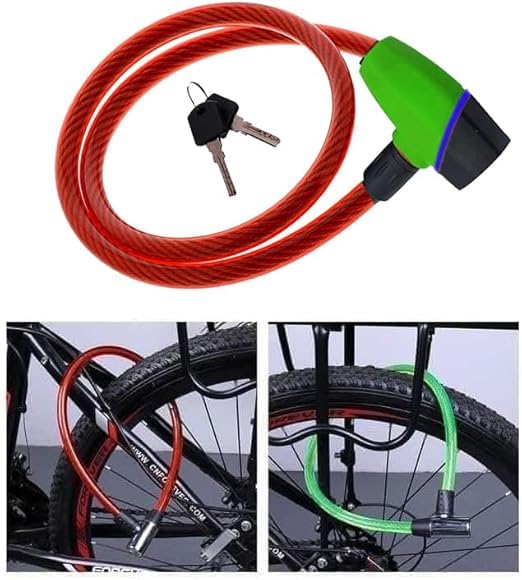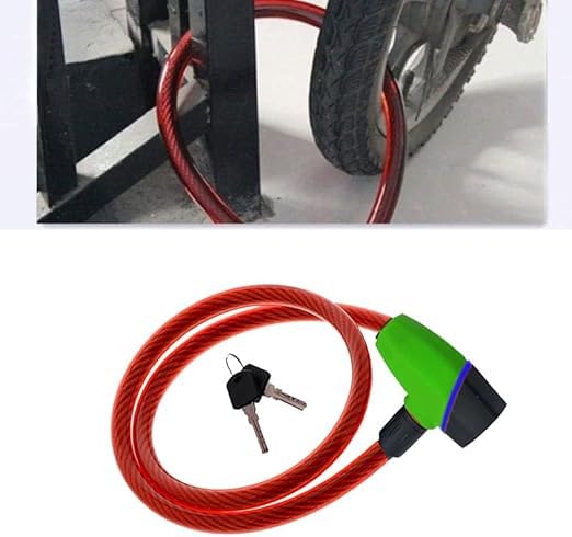 Generic - قفل امان للموتوسيكل ، قفل واير امان مضاد للسرقة لمقود الموتوسيكل والدراجات الجبلية ( واير احمر اخضر طول 145 سم) - SA CAR