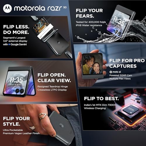 Motorola - موبايل رازر 50 بذاكرة رام 8 جيجابايت وسعة تخزينية 256 جيجابايت وشاشة اموليد خارجية 3.6 بوصة وشاشة اموليد داخلية 9.6 بوصة بتردد 120 هرتز وكاميرا سيلفي 32 ميجابيكسل من موتورلا، لون كوالا جراي