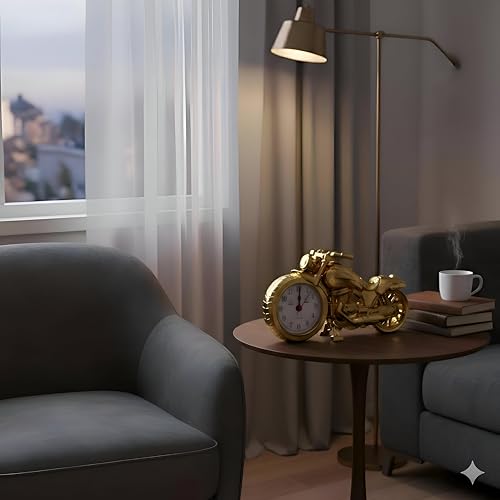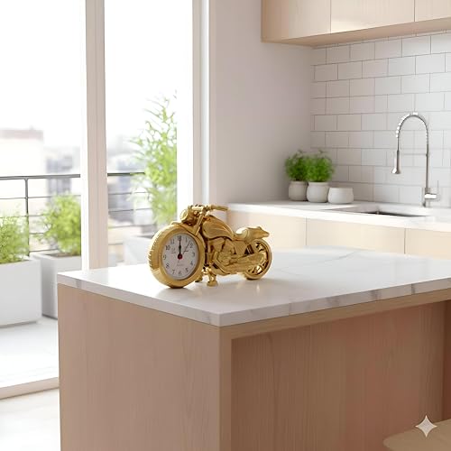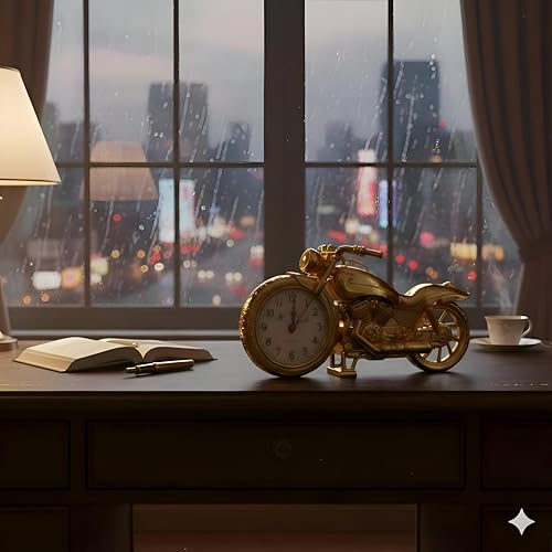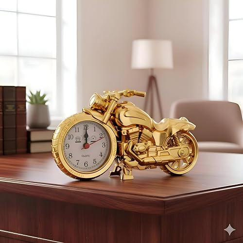 - تتميز ساعة المنبه الكلاسيكية المستوحاة من الدراجات النارية بلمسة نهائية ذهبية فاخرة، مما يجعلها قطعة ديكور مذهلة لغرف الأطفال أو المكاتب المنزلية.