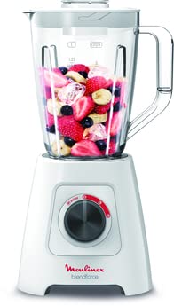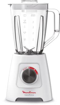 Moulinex - خلاط بليند فورس 2 من مولينكس، مزود بقفل ذكي ويتيح المزج المستمر حتى 3 دقائق، يتميز بمطحنة ووظيفة جرش الثلج ونظام تبريد هوائي، أبيض، 2 لتر، 600 وات، LM422127
