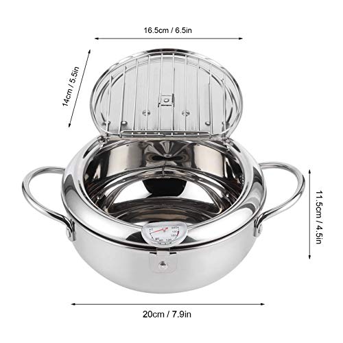 MOUMOUTEN - طاسة قلي صغيرة من الفولاذ المقاوم للصدأ على الطراز الياباني للمطبخ والأسماك والروبيان من مموتين، مقلاة صغيرة غير مطلية مع ميزان حرارة ولوح تصريف (S 20 سم)