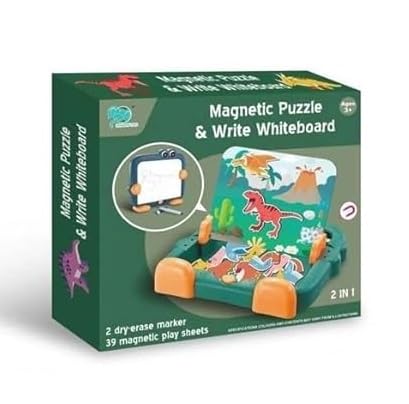 Mounir Toys - لوح كتابة بازل مغناطيسي 2 في 1 بنمط ديناصور 8786-2 مع 39 ورقة لعب مغناطيسية من منير تويز
