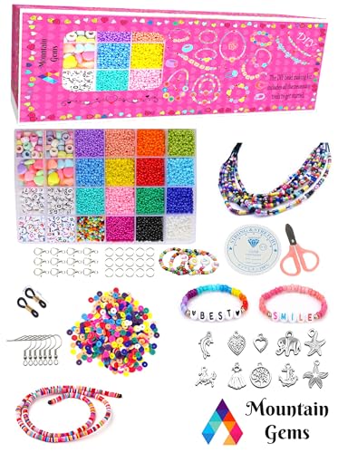 Mountain Gems - مجموعة خرز حرف يدوية صغير متنوع من ماونتن جيمز مع صندوق منظم لصنع الأساور والمجوهرات، 8 أشكال