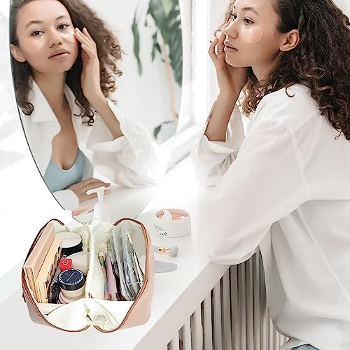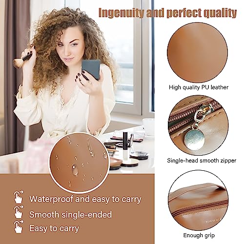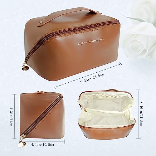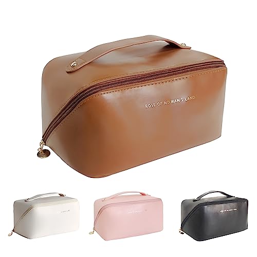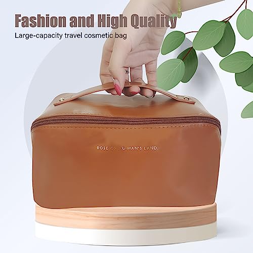 Mountain Land - شنطة مستحضرات تجميل للسفر للنساء والرجال بسعة كبيرة من جلد البولي يوريثين محمولة مقاومة للماء للحمام مناسبة لون بني