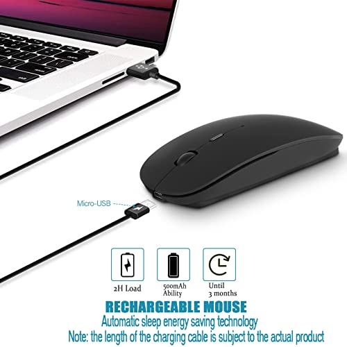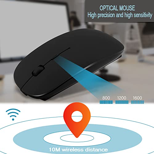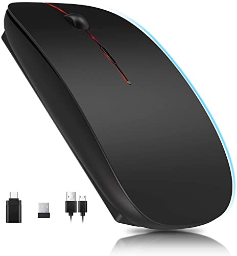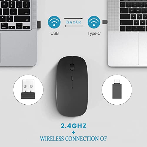 YOMYM - ماوس ضوئي لاسلكي قابل لاعادة الشحن 2.4 جيجا مع جهاز استقبال USB ومحول من النوع سي 3 DPI للتعديل مثالي لاجهزة اللابتوب اسود بلاستيك