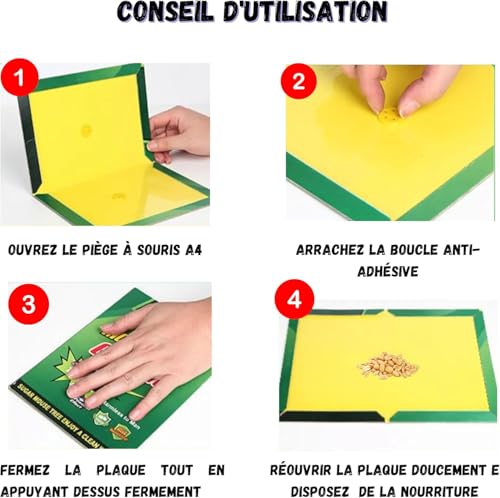 - سهل الاستخدام: ما عليك سوى فتح المصيدة، وإزالة الجزء الخلفي الواقي من السطح اللاصق، ووضعه في المناطق ذات نشاط القوارض والتخلص من المصيدة بمجرد الإمساك بالقوارض