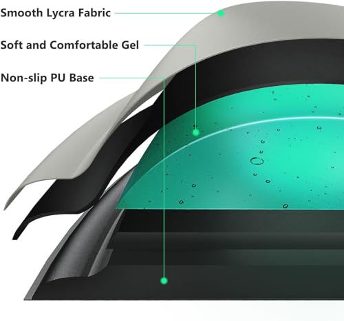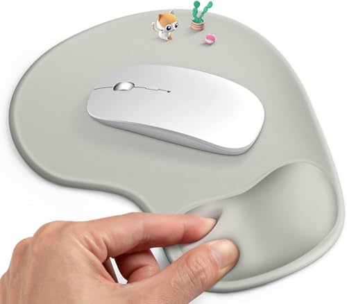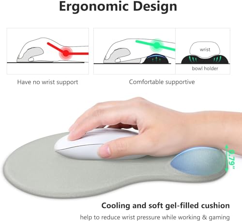 fashion mania - قاعدة ماوس مريحة مع مسند معصم جل مريح وقماش ليكرا، قاعدة من البولي يوريثان غير قابلة للانزلاق لسهولة الكتابة وتخفيف الألم، متينة وقابلة للغسيل، رمادي