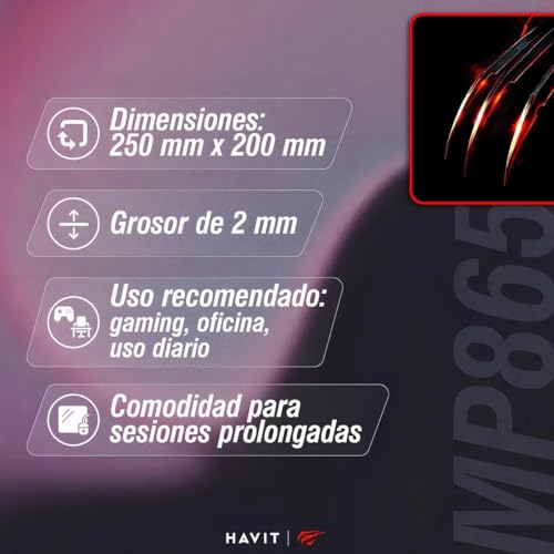 havit - قاعدة ماوس العاب هافيت Mp865 مقاس 25 × 20 سم بتصميم مخلب مطاطي احترافي غير قابل للانزلاق