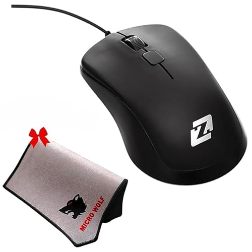 Generic - ماوس زيرو كومفورت USB بسلك، 3 أزرار، 1000 نقطة لكل بوصة، عالي الأداء سهل التشغيل، عالي الجودة، للمكتب والكمبيوتر واللاب توب، ويندوز / ماك، مع قاعدة ماوس مضادة للانزلاق بتصميم ذئب (أسود، ZR205)