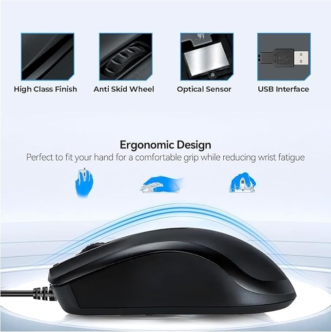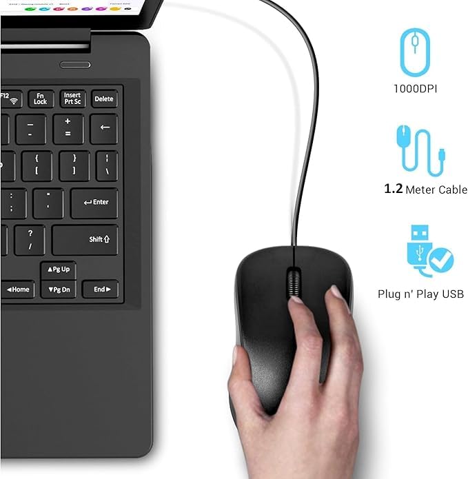 - أفضل ماوس USB بسلك مصمم لعملك اليومي والتعلم الإلكتروني السريع، حيث يلبي تصميمه السلكي البسيط بثلاثة أزرار واستجابة عالية الدقة 1000 نقطة لكل بوصة احتياجاتك اليومية. يتميز بعجلة تمرير مطاطية سهلة الاستخدام، مما يساعدك على التركيز وزيادة الكفاءة أثناء استخدام الإنترنت أو برامج مثل وورد واكسل والتصميم وغيرها. تركيزنا على الجودة لا مثيل له.