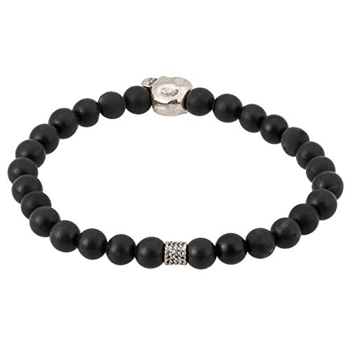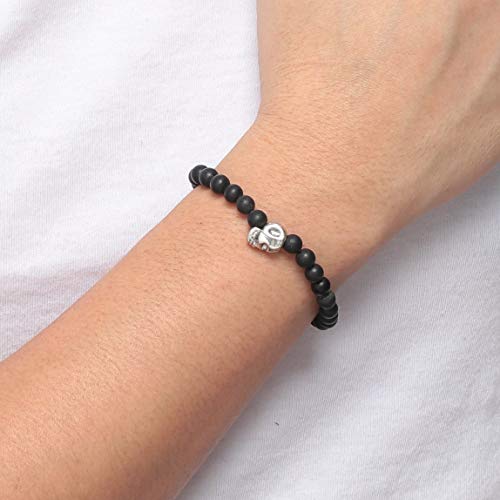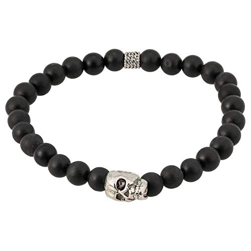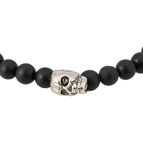 generic - سوار من العقيق اليماني الأسود المطفي مع دلاية بتصميم جمجمة مطلية بالروديوم للرجال