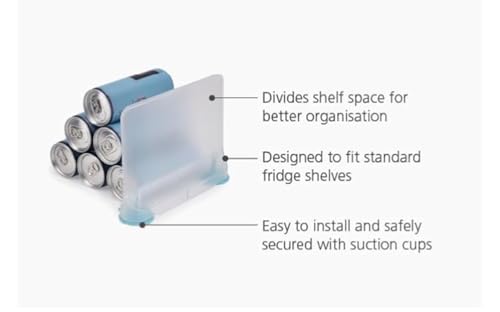 - يقسم مساحة الرف لتنظيم أفضل، سهل التركيب ومؤمن بأمان بقاعدة لاصقة، ومصمم ليناسب أرفف الثلاجة القياسية، وسهل الإزالة والتنظيف.