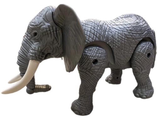 Generic - لعبة فيل متحركة مع موسيقى وأصوات واقعية، فيل رمادي بأنياب، لعبة إلكترونية تفاعلية للأطفال