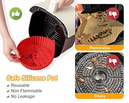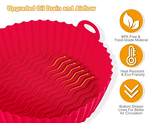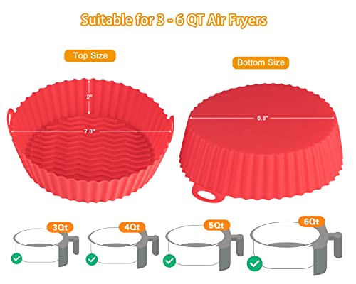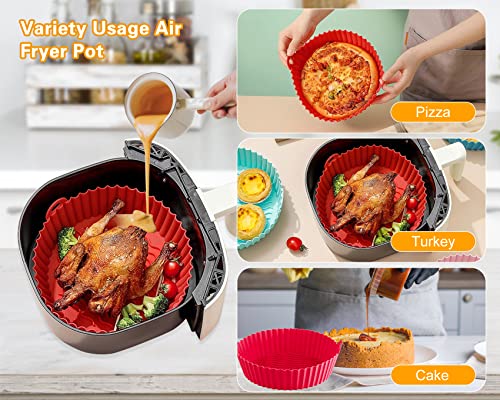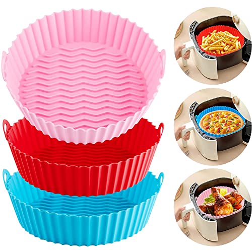 MOWOT - مجموعة 3 قطع من وعاء سيليكون للمقلاة الهوائية من موووت قابل لإعادة الاستخدام، وعاء سيليكون غير لاصق آمن غذائيا للمقلاة الهوائية سعة 3.42 - 5.70 لتر للتحميص والفرن والميكروويف