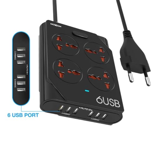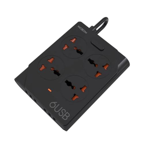 Generic - وصلة تمديد بـ 6 منافذ ومنفذ USB من موكسوم، أسود