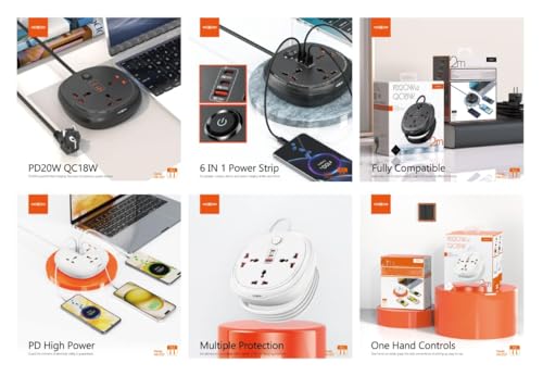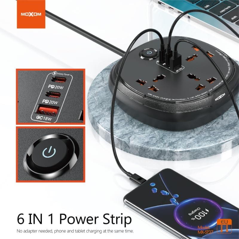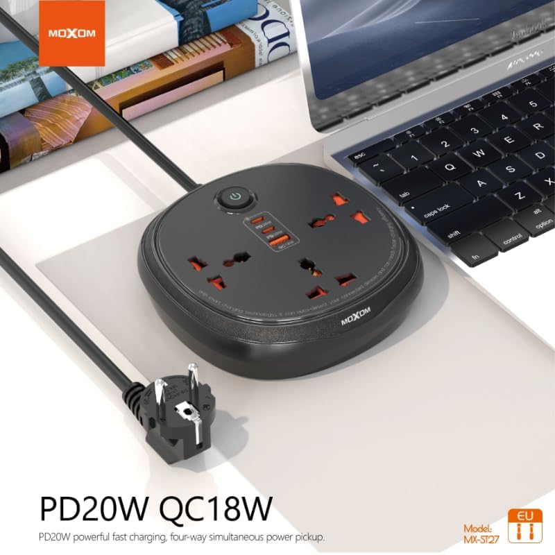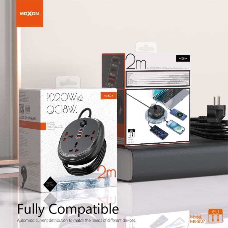 MOXOM - وصلة تمديد كهربائية لأجهزة متعددة MX-ST27 من موكسوم - أسود