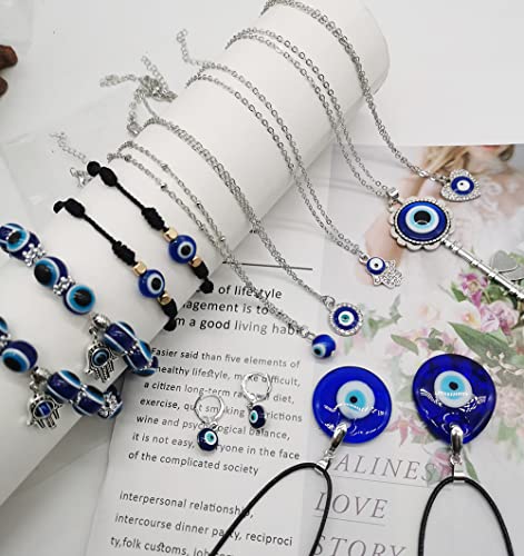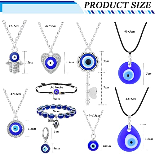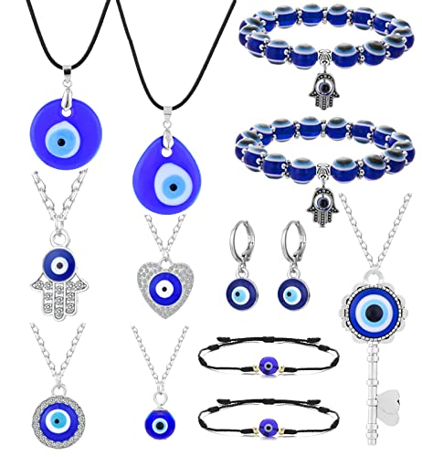 MOZAKA - طقم دلايات بتصميم عين الحسد 13 قطعة من موزاكا مجوهرات مكون سلسلة وحبل جلدي وحلق وسوار بدلايات على شكل للحماية مناسب للرجال والنساء الهيماتايت أزرق مادة صمغية