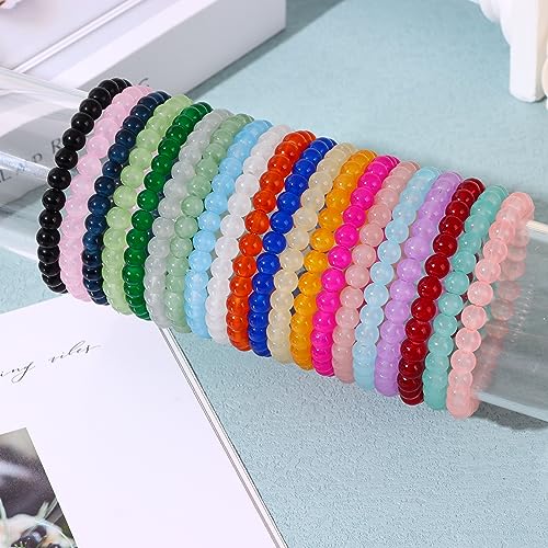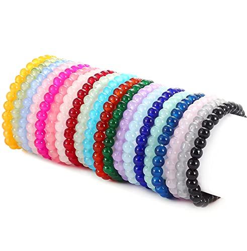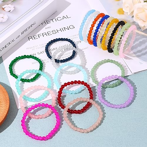 MOZAKA - MOZAKA 20Pcs 6mm Beaded Stretch Bracelet for Women Multicolor Crystal Glass Beads Bracelets Handmade Round Beads Elastic Bracelets Jewelry