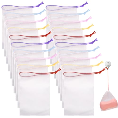 Mozeat Lens - شنطة شبكية لتقشير وحفظ الصابون للصابون اليدوي وشبكة لعمل فوم برباط للاستحمام والدش من موزيات لينس، مكونة من 20 قطعة