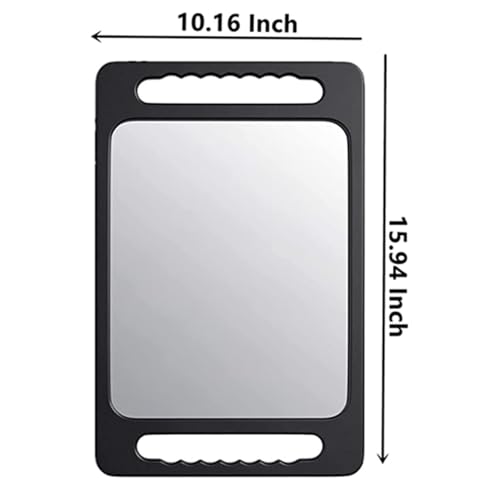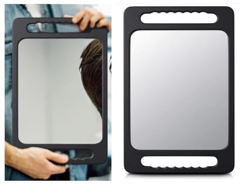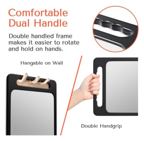 mpowtech - كومباني MpowTech مرايا يد غير قابلة للكسر بمقبض مزدوج - مرايا محمولة باليد متينة - مراة حلاقة خفيفة الوزن لصالونات التجميل - مرايا صالون حلاقة مستطيلة محمولة باليد (عبوة من قطعتين)، اسود