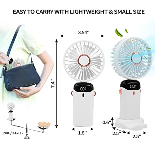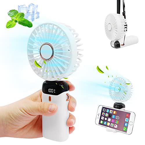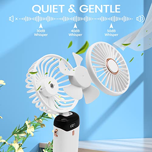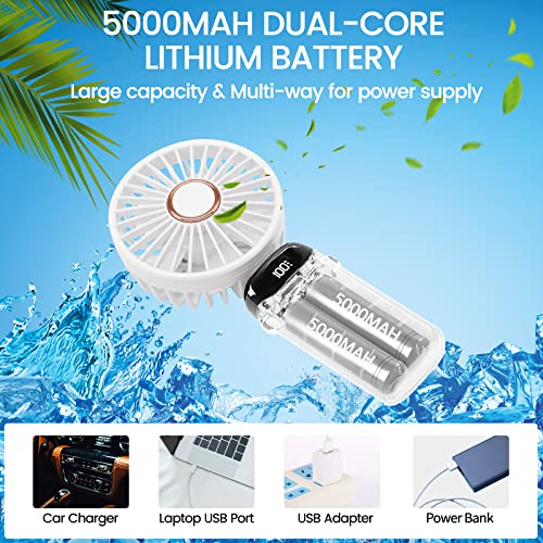 MQFORU - مروحة محمولة باليد، مروحة نافذة صغيرة هادئة، مروحة شخصية قابلة لإعادة الشحن بمنفذ USB 5000 مللي أمبير في الساعة، مروحة صغيرة تعمل بالبطارية مع 5 سرعات للمنزل والسفر والمكياج والمكتب من MQFORU (أبيض)