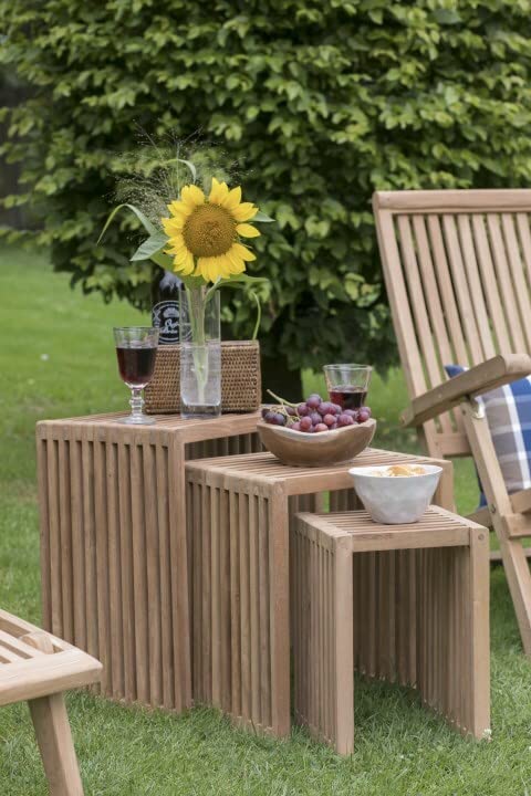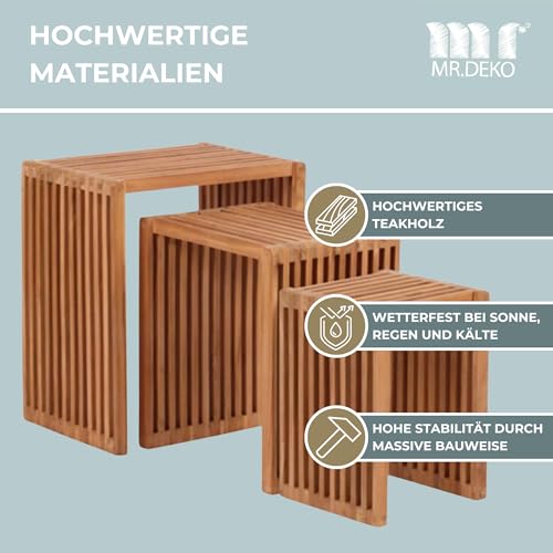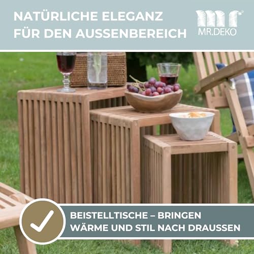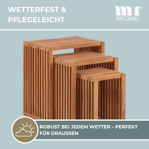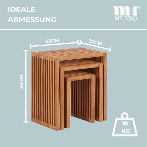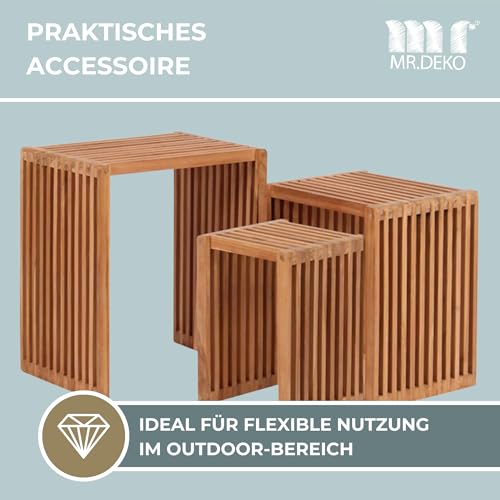 MR. DEKO - مجموعة من 3 طاولات جانبية مربعة خشب الساج بثلاثة مقاسات بحد اقصى 45 × 32 50 سم العرض العمق الارتفاع اثاث خارجي قابل للتكديس للشرفة والفناء والحديقة مستر ديكو®
