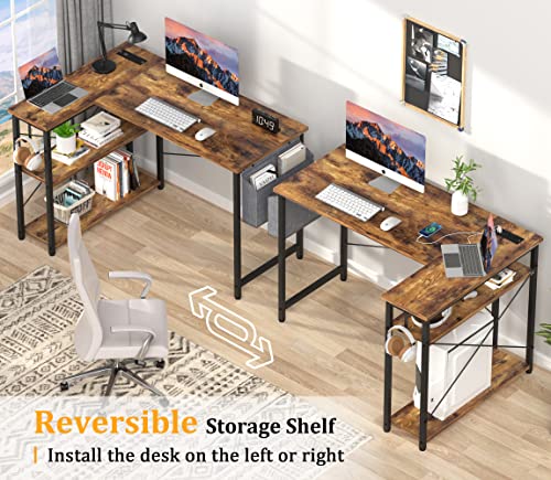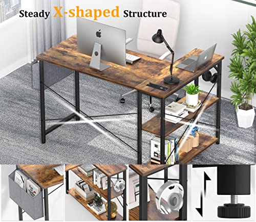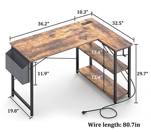 Mr IRONSTONE - مكتب كمبيوتر زاوية على شكل L مع منفذ طاقة مقاس 1.20 متر للمساحات الصغيرة أرفف تخزين مناسب للكتابة والعمل والدراسة للمنزل والمكتب وغرفة النوم من مستر ايرون ستون بني