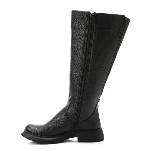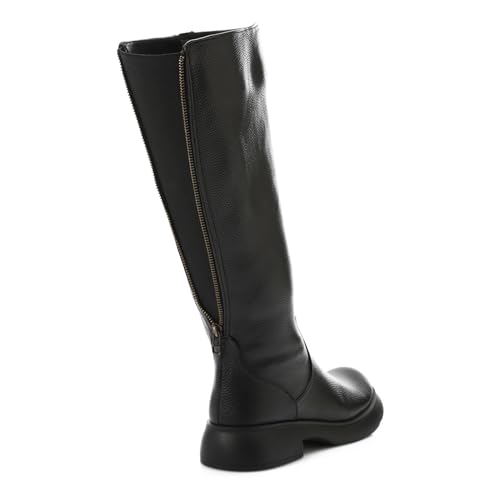 Mr Joe - بوت بطول الركبة بسوستة مزدوجة من مستر جو - اسود