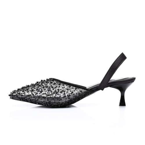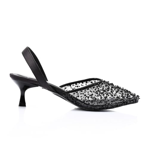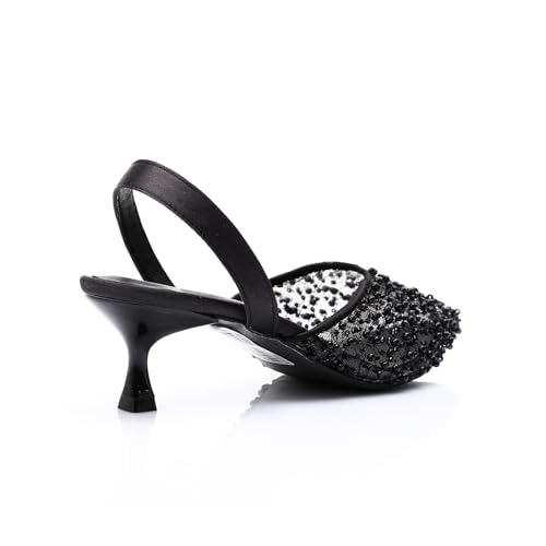 Mr Joe - حذاء بكعب شبكي انيق مزين باحجار الراين من مستر جو - اسود 3027