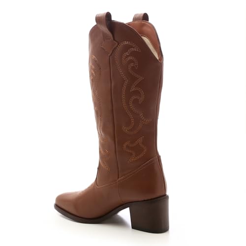 Mr Joe - حذاء كاوبوي برقبة متوسطة الطول بمقدمة مثلثة للنساء من مستر جو، مقاس 43 - بني