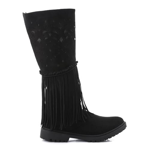 Mr Joe - بوت بطول منتصف الساق بشراشيب فريدة من مستر جو - أسود