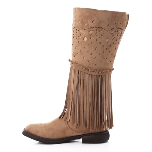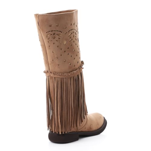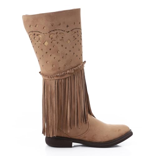 Mr Joe - بوت بطول منتصف الساق بشراشيب غربية من مستر جو، لون بني غامق