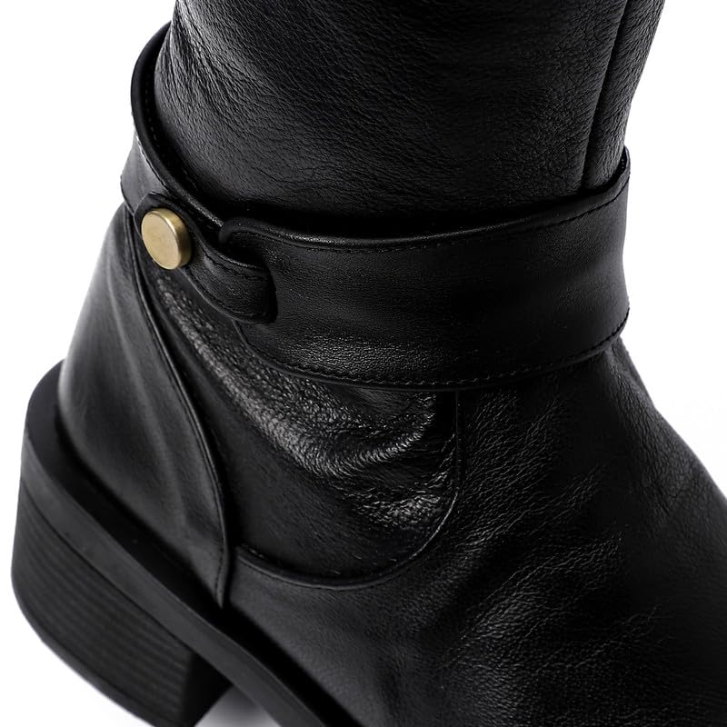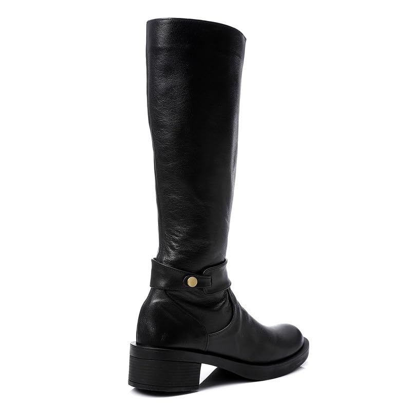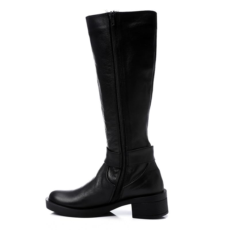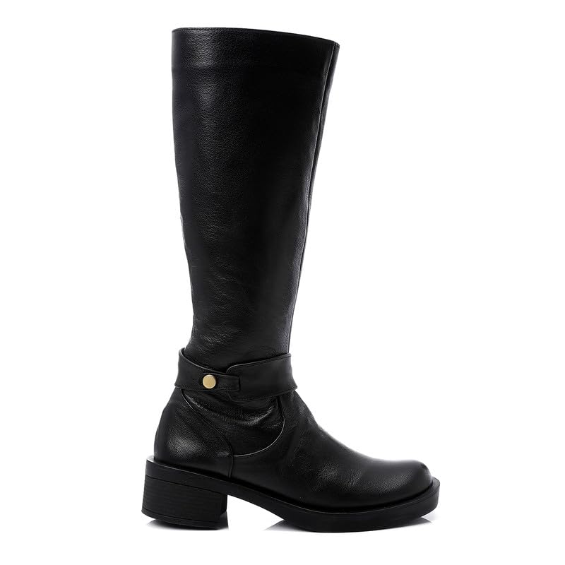 Mr Joe - حذاء برقبة طويلة حتى الركبة بطرف دائري وسحاب للنساء من مستر جو