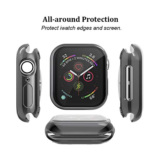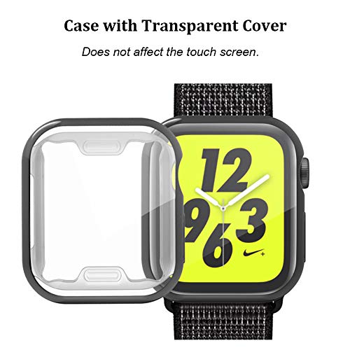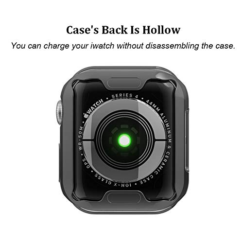 MroTech - مروتيك جراب متوافق مع ساعة ابل سلسلة 5 4 44 ملم واقي شاشة اي ووتش مرن من البولي يوريثين الحراري غطاء حماية نحيف بالكامل لساعة - اسود