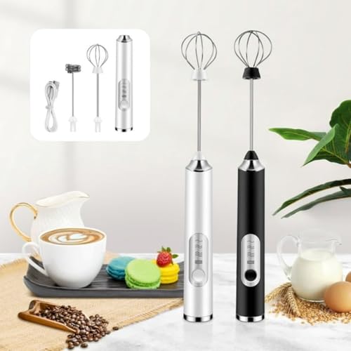 Mrowzeex - خلاط رغوة كهربائي يعمل بالشحن عن طريق منفذ USB - عصا خفق يدوية للبن والمشروبات الساخنة، وخفاقة بيض يدوية من مراوزيكس، أسود