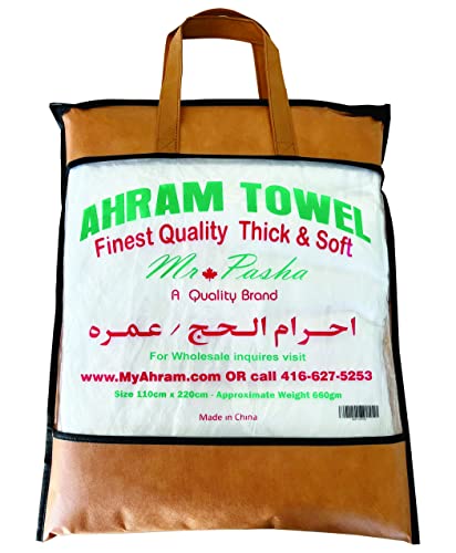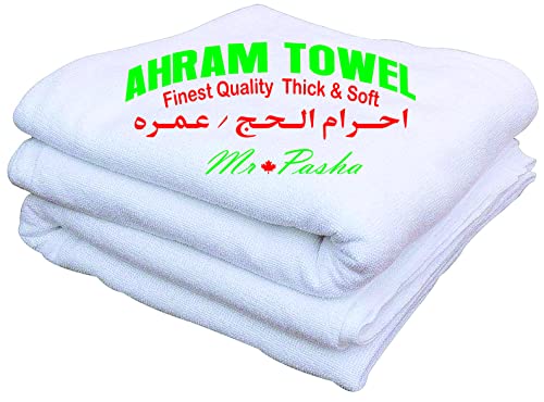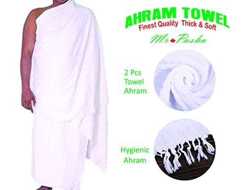MRPASHA - ملابس إحرام للرجال مناسبة للعمرة والحج، فوط طبيعية صحية من مرباشا، طقم من قطعتين بلون أبيض، مقاس 1.15 م × 2.30 م