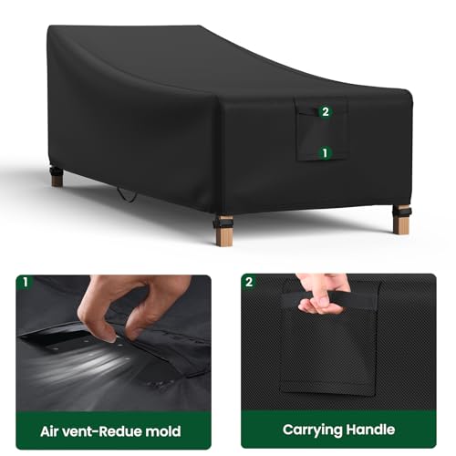 Mrrihand - غطاء كرسي استرخاء مقاوم للماء والأشعة فوق البنفسجية من مريهاند أغطية أثاث الفناء الخارجي قماش أوكسفورد متين مقاومة للطقس مع فتحة تهوية قطعتين طول 1.7 متر × عرض 76 سم ارتفاع