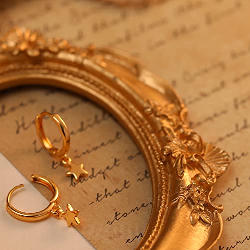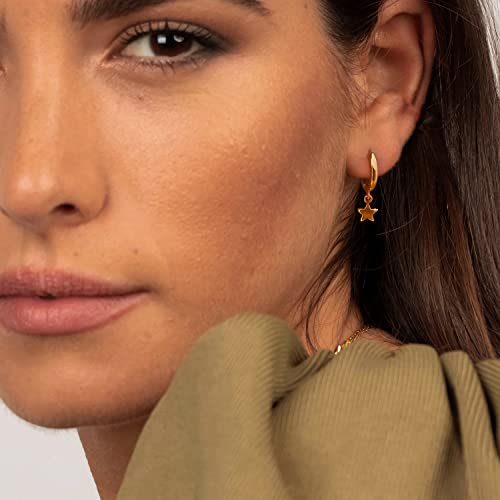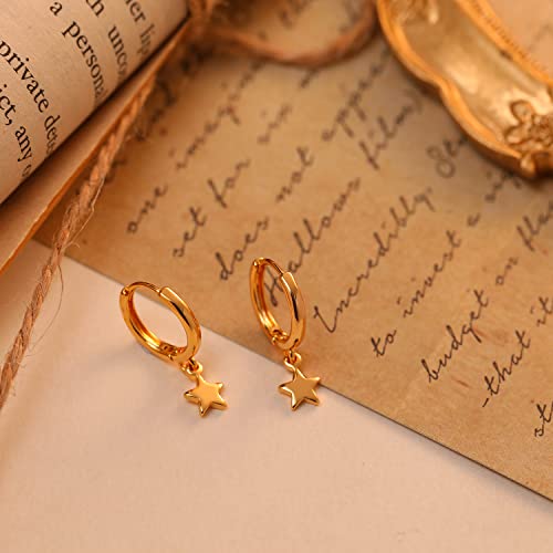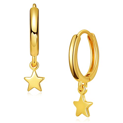 MRSXIA - حلق بتصميم حلقة دائرية متدلية مطلية بالذهب عيار 18 ولا تسبب الحساسية، بتصميم ناعم، بسيط، وصغير للنساء من مرسكسيا
