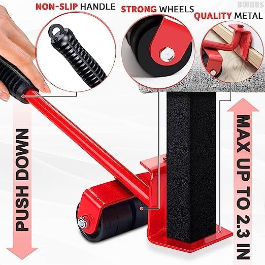 - يمكنك تحريك الأثاث الثقيل بسهولة مثل الأسرّة والثلاجات وغيرها مع مجموعة أدوات رفع الأثاث هذه المكونة من 4 قطع.