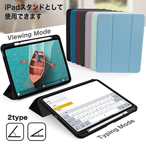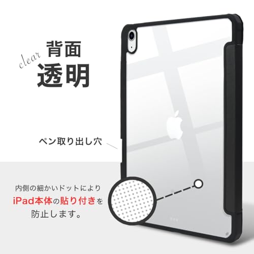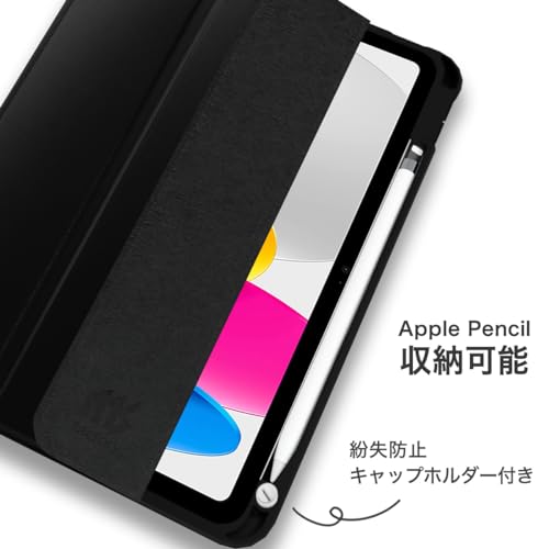 MS factory - جراب اي باد الجيل العاشر بظهر شفاف من ام اس فاكتوري، غطاء تخزين قلم اي باد 10 مضاد للصدمات، حامل خفيف الوزن بخاصية النوم التلقائي، لون أسود، IPD-10-NO-DET-PK