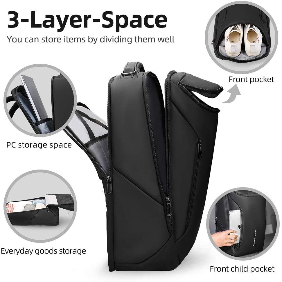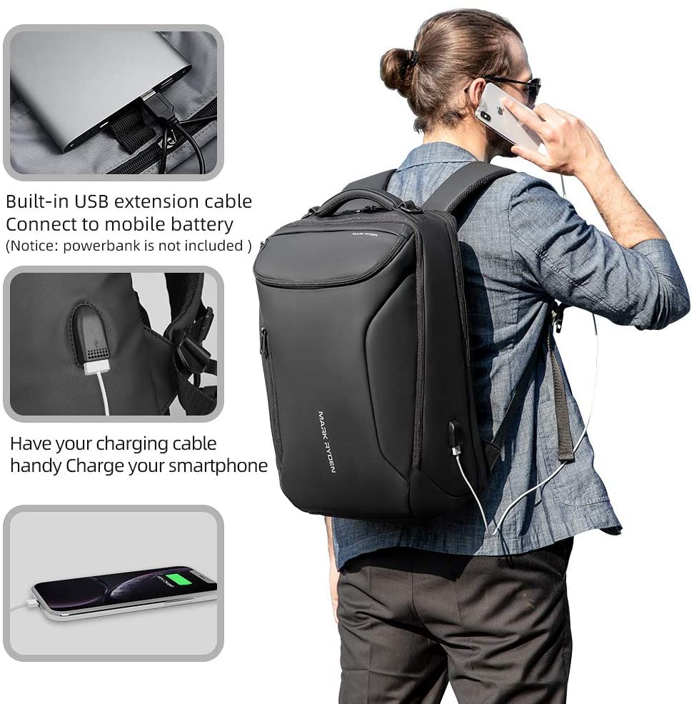 MS - شنطة ظهر للاب توب مقاومة للماء مس مارك رايدن مقاس 17.3 بوصة سعة كبيرة مناسبة للاعمال والسفر مع منفذ شحن USB للرجال أسود