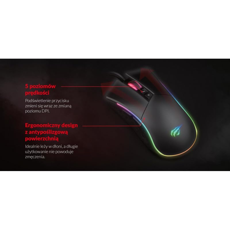 - أنماط الإضاءة: مؤشرات إضاءة تفاعلية مع تغييرات اللون بناءً على DPI محرك ألعاب دقيق: لتحديد المواقع بدقة عالية ونقل البيانات بشكل ثابت.