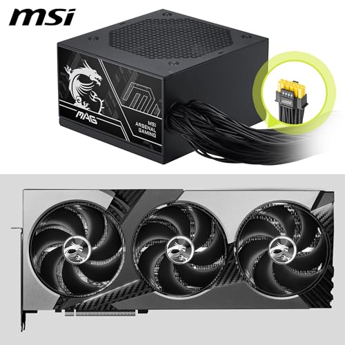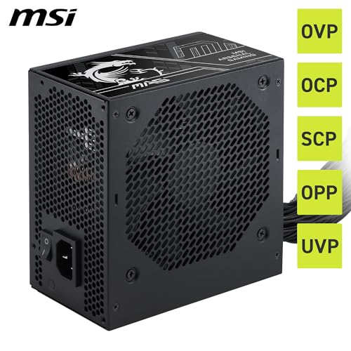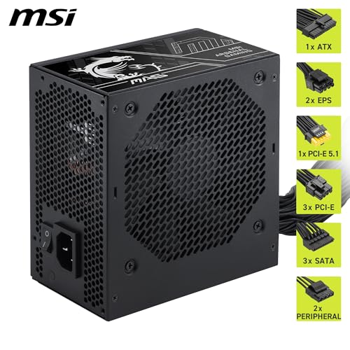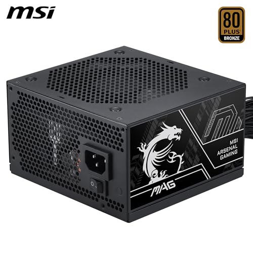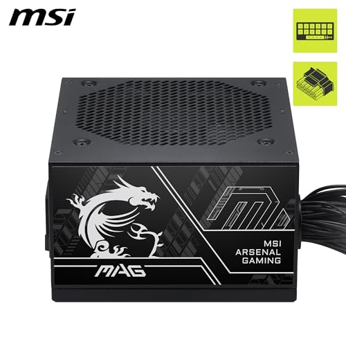MSI - مزود طاقة للألعاب ماج A750BN PCIE5 III، منخفض الضوضاء شبة رقمي بقدرة 750 وات، غير قابل للفصل، بكفاءة 80+ برونز، مع كابلات مزدوجة 12 فولت 2 × 6، مكثف بمستوى خوادم، متوافق مع ATX 3.1 وPCIe 5.1