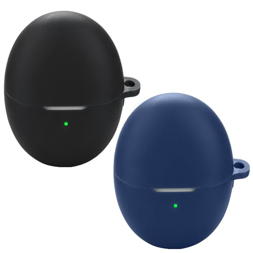 Msialt - جراب حماية سيليكون مضاد للصدمات متوافق مع سماعات هواوي فري بودز 6 يدعم الشحن اللاسلكي بتصميم كرتوني لطيف ثلاثي الأبعاد من مسيالت، أسود وأزرق