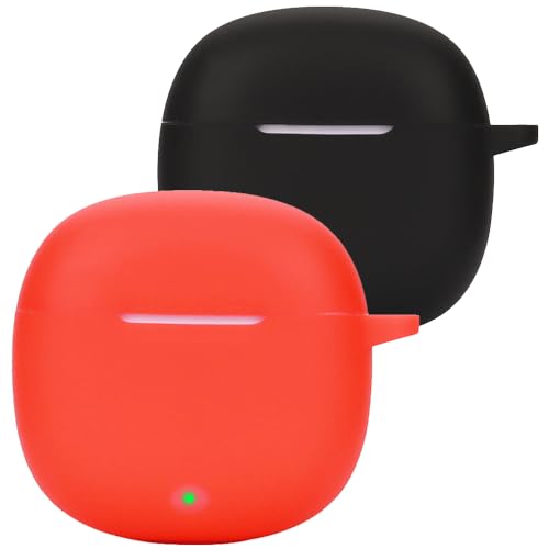 Msilte - جراب علبة سماعات من الجلد الناعم والسيليكون مضاد للصدمات بسلسلة مفاتيح متوافق مع هونر ايربادز X6 مسيلت أسود وأحمر