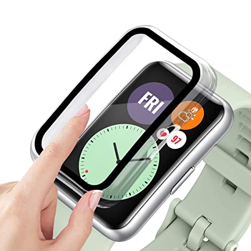 - [تصميم مثالي]: جراب من البولي كربونات عالية المتانة + زجاج مقوى مع شاشة حماية بتصميم يغطي الحواف الأمامية والمنحنية بالكامل لساعة هواوي فيت، يحمي من الخدوش والسقوط والصدمات.