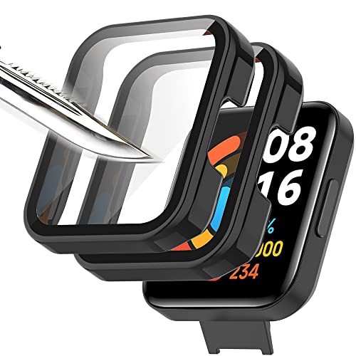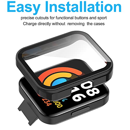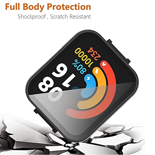 - [تصميم مثالي]: جراب متين للغاية من البولي كربونات + زجاج مقوى مع واقي شاشة، يغطي الحواف الأمامية والمنحنية بالكامل لساعة شاومي مي ووتش 2 لايت، ويحمي من الخدوش والسقوط والصدمات.