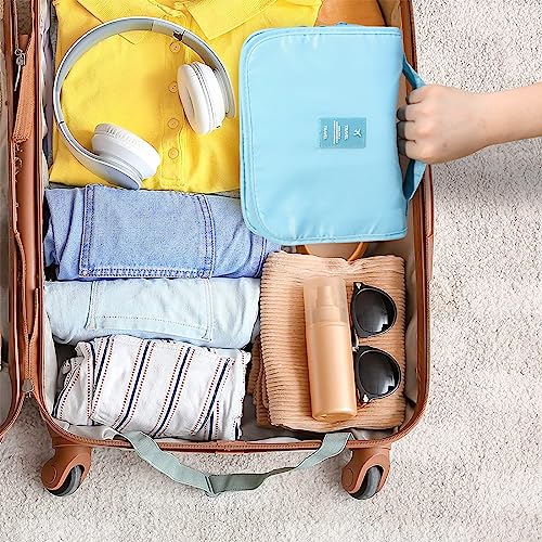 MSQ - شنطة أدوات الزينة للنساء والرجال من ام اس كيو، شنطة أدوات الزينة للسفر للتعليق قابلة للطي، شنطة أدوات الزينة مع مقبض حمل، شنطة مستحضرات تجميل مقاومة للماء، شنطة غسيل عصرية بلون أزرق