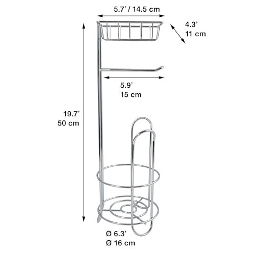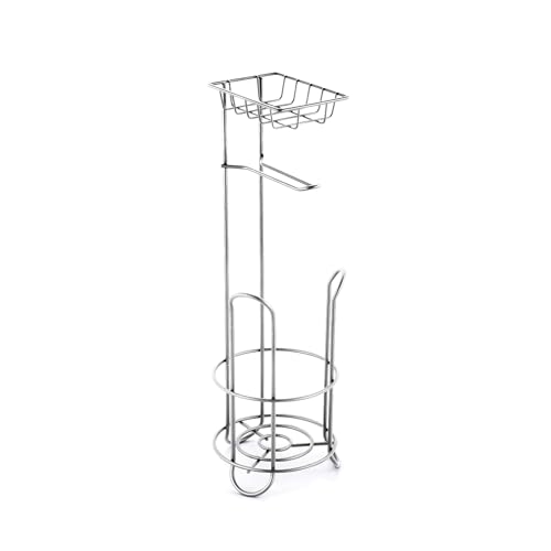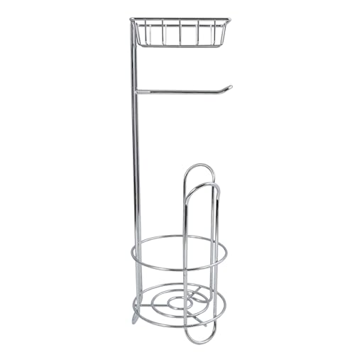 MSV - ام اس في حامل بكرة تواليت مع رف، حامل لفافة تواليت رفيع قائم بذاته معدني قائم بذاته لاجمالي 3 لفافات، فضي