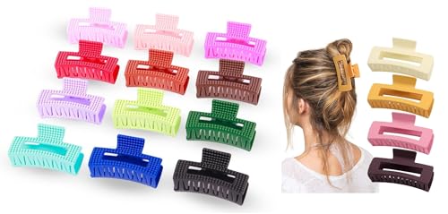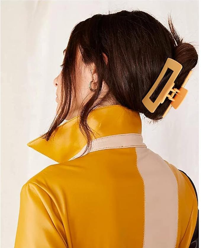 Generic - مشابك شعر مستطيلة غير لامعة على شكل موزة للشعر الكثيف من ام تي - 4 قطع مشابك فك ومشابك بتصميم مانع للانزلاق للنساء (متعددة الالوان)